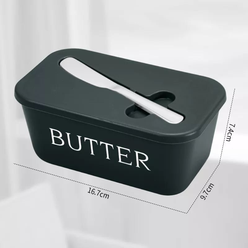 This butter box features a classic rectangular shape and a smooth, solid finish that adds a modern touch to your refrigerator and dining table. The included knife rests neatly inside, giving you everything you need for effortless spreading. Its sturdy food-safe material keeps butter protected while maintaining its natural flavor and texture. Compact in size, it fits easily into most fridge doors and shelves, making storage simple and convenient.