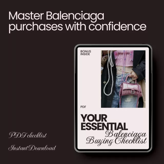 Unlike other general fashion guides, our Essential Balenciaga Buying Checklist is tailored specifically to this high-end brand. We provide actionable tips, expert insights, and key details about Balenciaga that you won’t find elsewhere. This resource is designed to help you avoid common mistakes and ensure your purchase is authentic, stylish, and a valuable addition to your wardrobe.